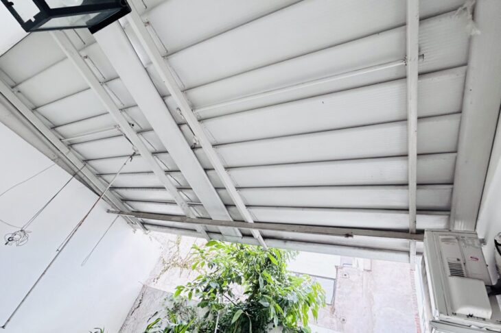 Patio privado con toldo articulado, ideal para disfrutar al aire libre con privacidad y comodidad.